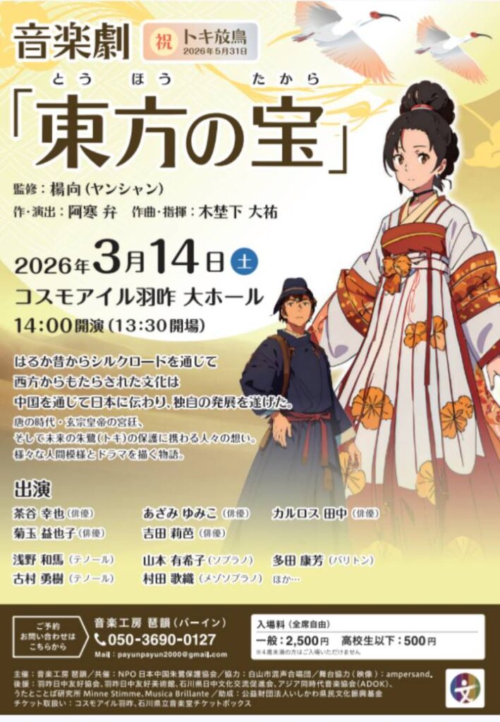 3.14日(土)羽咋でトキの音楽劇を上演します。(2025年度共催事業)
